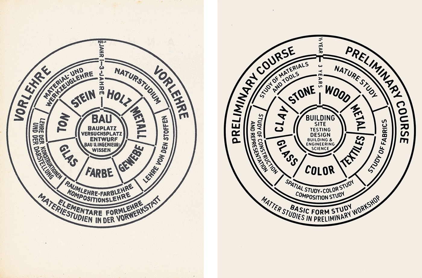 1920년, 바우하우스는 예술은 영원히 배우는 것이라는 방식을 세상에 내보였다. 발터 그로피우스와 그 외 교육가들이 만든 개발한 커리큘럼은 반 년짜리 예비 수업엔 색채와 형태 이론, 구성의 원리, 드로잉 훈련 등이 포함된다. 도예든, 직조든, 그림이든 어떤 영역의 학위를 따기 전, 이 수업은 필수 과목이었다.