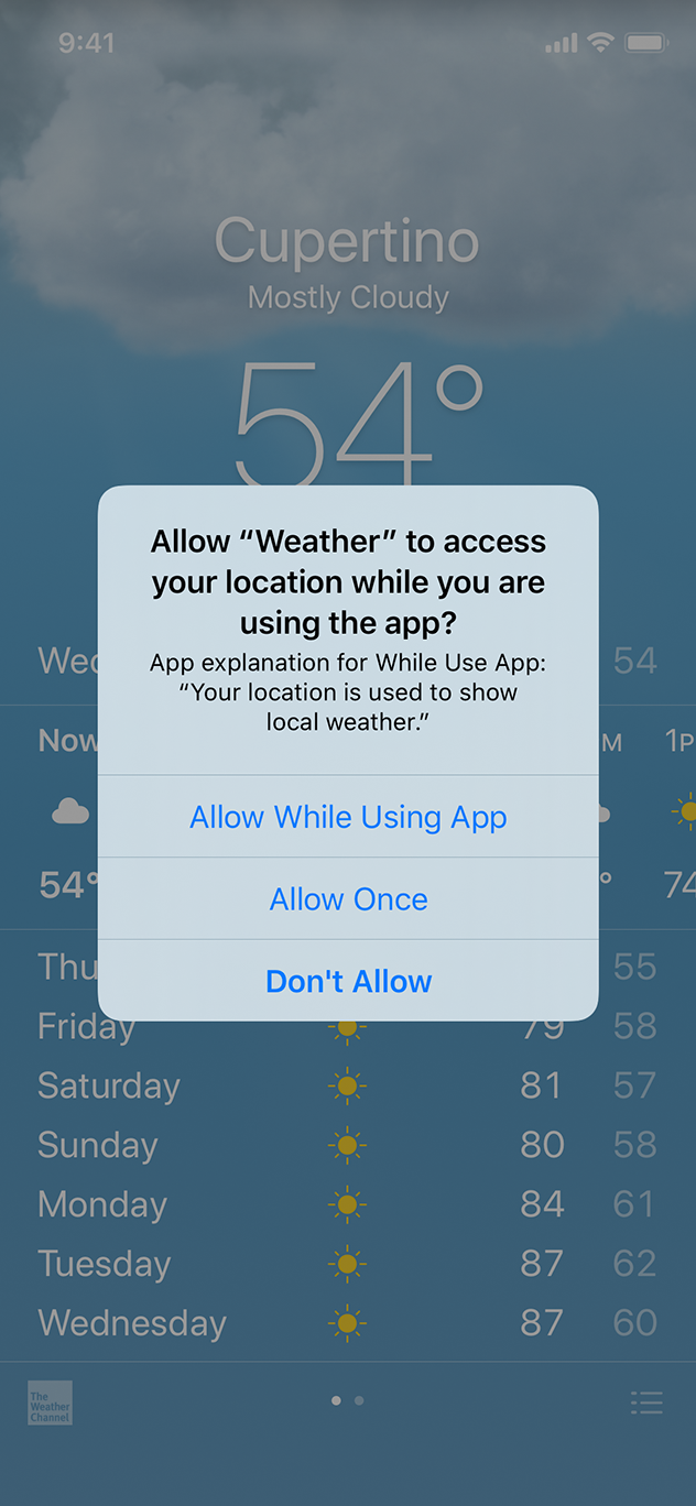 앱에 확실하게 필요한 개인정보만 요구하세요. 명확한 이유 없이 개인정보를 요구하는 것은 당연히 의심이 갑니다. 정보를 꼭 필요로하는 기능을 사용할 때에만 해당 요청의 허가를 받도록 하세요. 예를 들어, 위치 추적 기능이 켜져있을 때만 현재 위치에 접근할 수 있도록 요구할 수 있습니다.